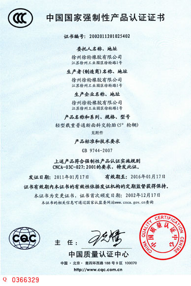 質(zhì)量是企業(yè)的生命,是企業(yè)得以生存和發(fā)展的基礎(chǔ)。公司自2006年創(chuàng)辦以來(lái),徐輪橡膠就是一直對(duì)產(chǎn)品品質(zhì)孜孜以求,精益求精。以“質(zhì)量是生命 科技求領(lǐng)先 過(guò)程零缺陷 服務(wù)到永遠(yuǎn)”為質(zhì)量方針,徐州徐輪橡膠有限公司建立健全了科學(xué)完善的質(zhì)量保證體系,自2009年起先后通過(guò)了ISO9001-2008、CCC、美國(guó)DOT、歐洲E-mark等質(zhì)量體系認(rèn)證。
